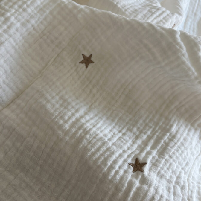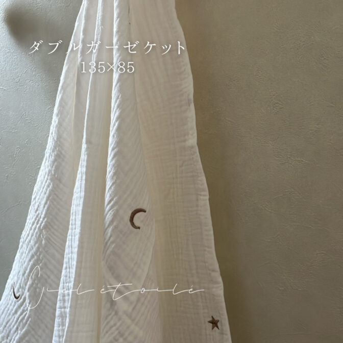 fabric ダブルガーゼケット 特別価格 2784 円 (税込) 3480 円 (税込) 購入はこちら ※商品価格に別途送料がかかる商品もございます。 詳しくは商品ページをご確認ください。 説明 【商品説明】 サイズ 135cm×85cm 素材 コットン 星と月のモチーフが刺繍された、通気性の良いダブルコットンのガーゼケット。 コットン素材は洗えば洗うほど気持ちの良い手触りになります。 肌触りがよく、赤ちゃんの肌にも優しく安心してお使いいただけます。 サイズはお昼寝にちょうどいいサイズで、軽いので持ち運びにも◎ 吸水性、速乾性に優れており汗をたくさんかく赤ちゃんに。 星と月のデザインは男女問わず使用でき、プレゼントにもぴったりです。 関連商品 【名入り】出産祝い-ベージュ-4点セット 4550 円 (税込) コメントは受け付けていません。