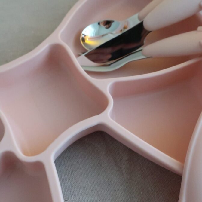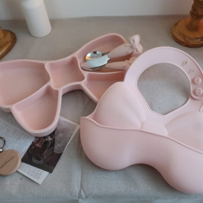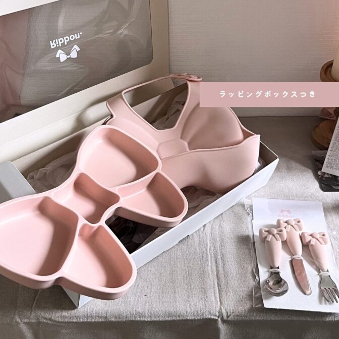 シリコン素材で出来たプレートと可愛らしいスタイが魅力的なこのセットは
